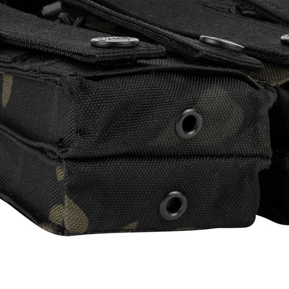 Featuring quick-release bungee retainers, it allows for fast access to your magazines while ensuring they stay firmly in place. The pouch is MOLLE compatible, allowing easy attachment to your gear for a secure, customizable setup. With four 6" attachment straps and press studs, it attaches firmly to your loadout, enhancing stability during movement.