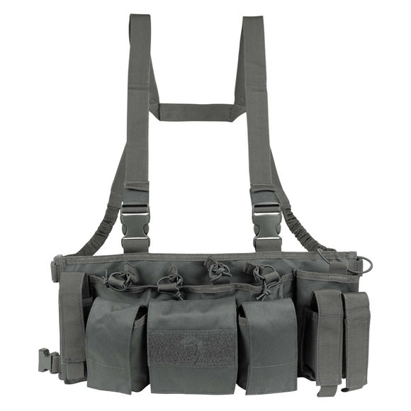 Equipped with a GPS radio pouch, front utility pouches, and both double and single pistol mag pouches, this chest rig ensures your essentials are always within easy reach. The four kangaroo-style magazine sleeves with bungee retainers hold rifle mags securely, allowing for quick reloads during high-pressure moments.